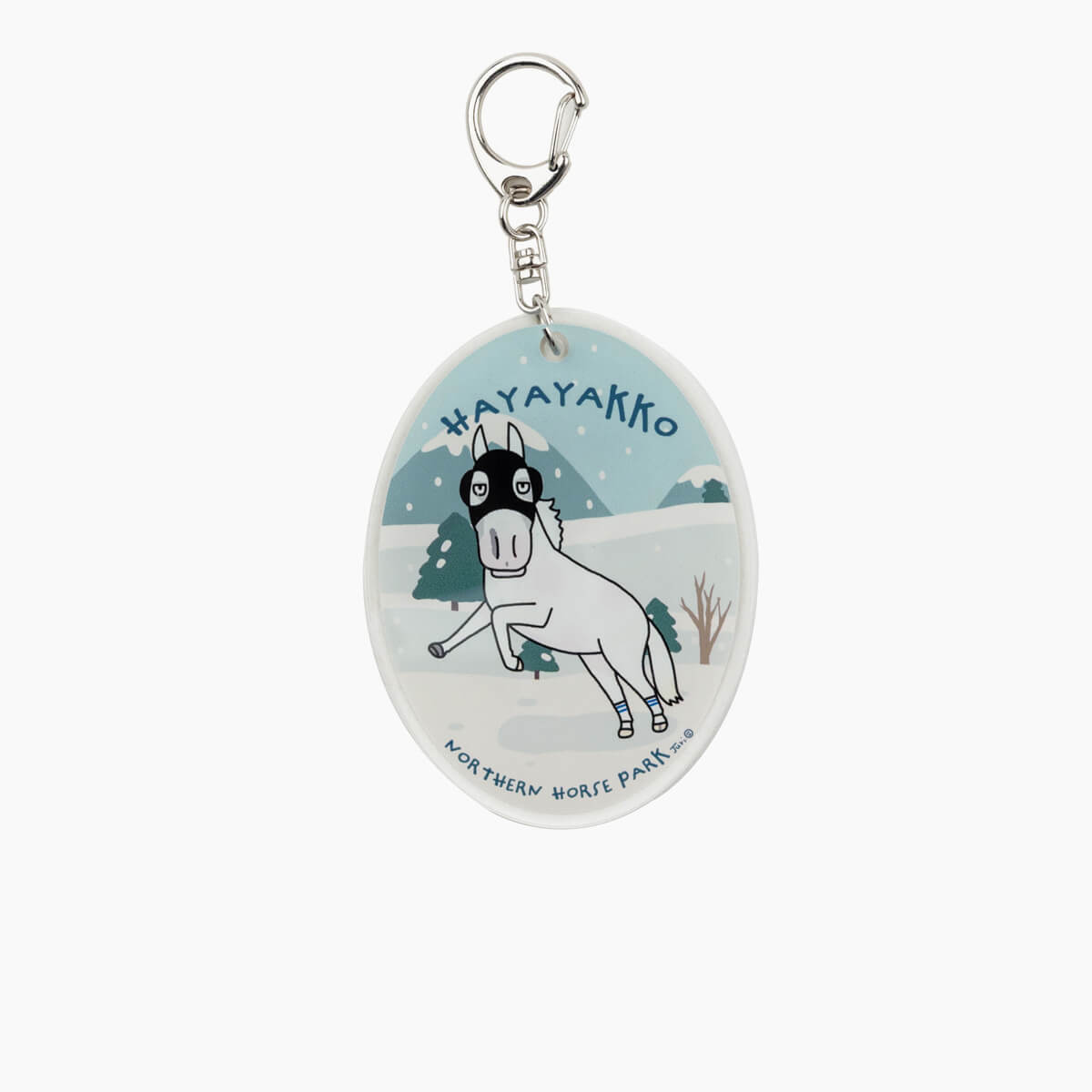 おがわじゅりさんが描く、「北海道の冬とハヤヤッコ」のオリジナルアクリルキーホルダー。