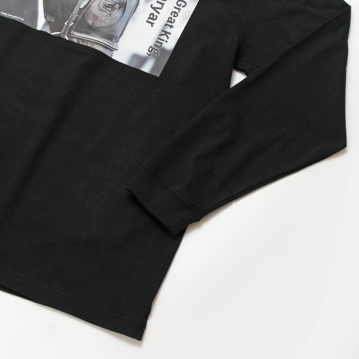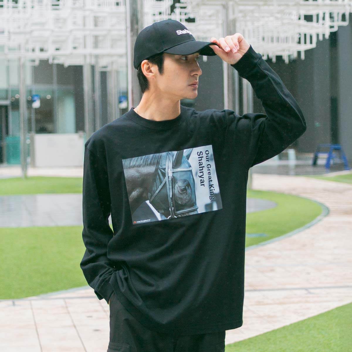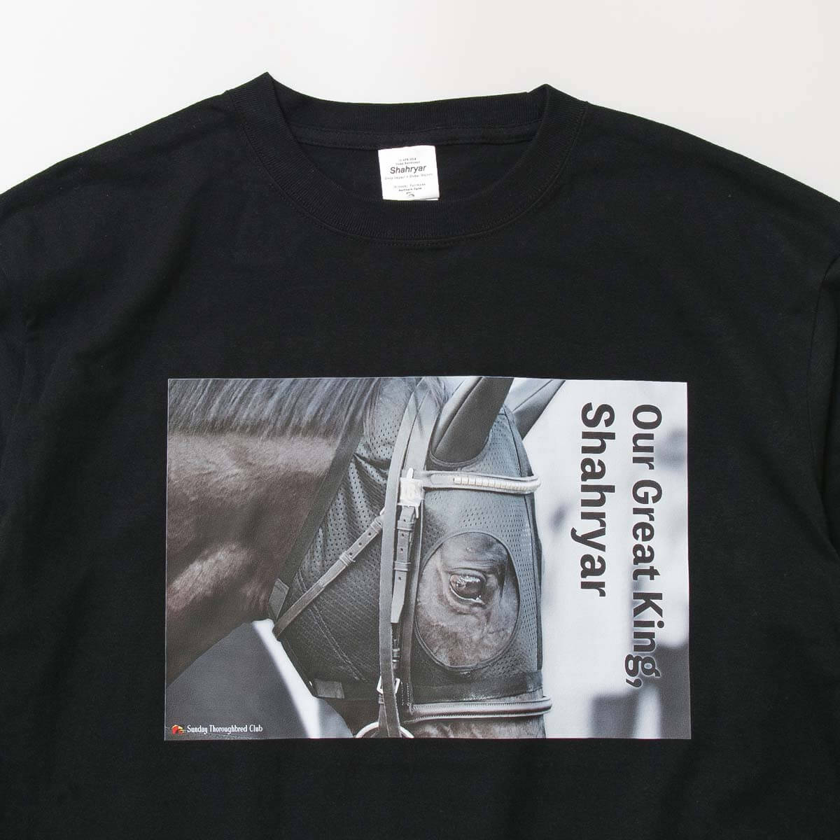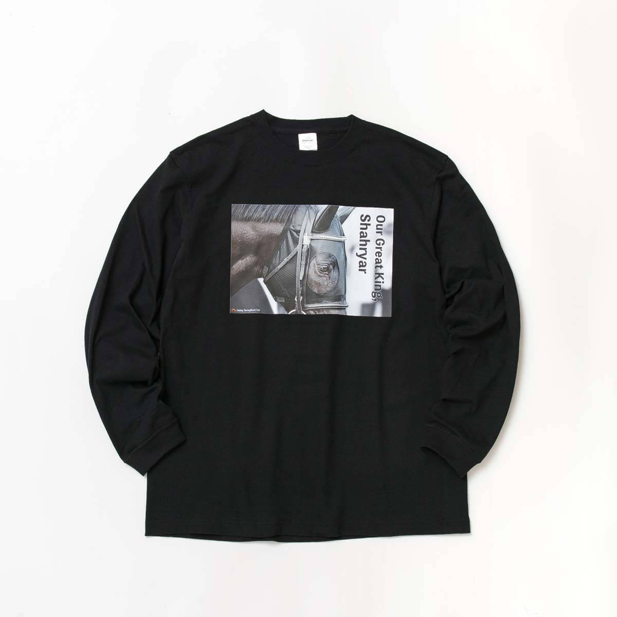 再入荷お知らせ登録 商品についてのお問い合わせ表面に最後のレースとなった2024年有馬記念でのパドックのシャフリヤールの表情をグラフィカルにデザインした、長袖Tシャツです。