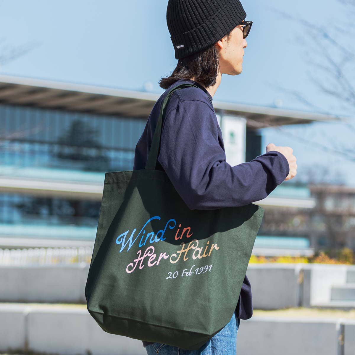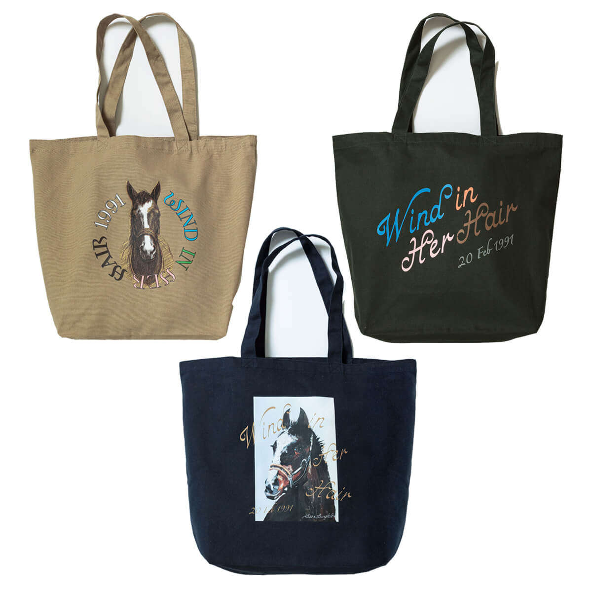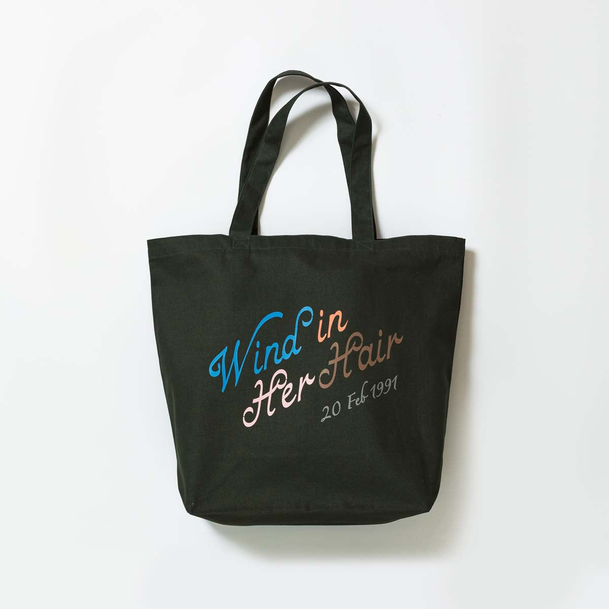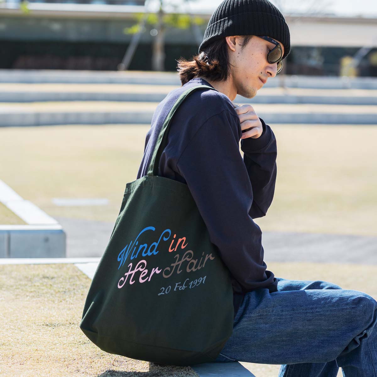 表面にウインドインハーヘアのロゴと生年月日をカラフルにデザイン。落ち着いたボディカラーに映える色使いが存在感を演出します。日常使いしやすく、偉大な母の名をさりげなく取り入れたトートバッグです。