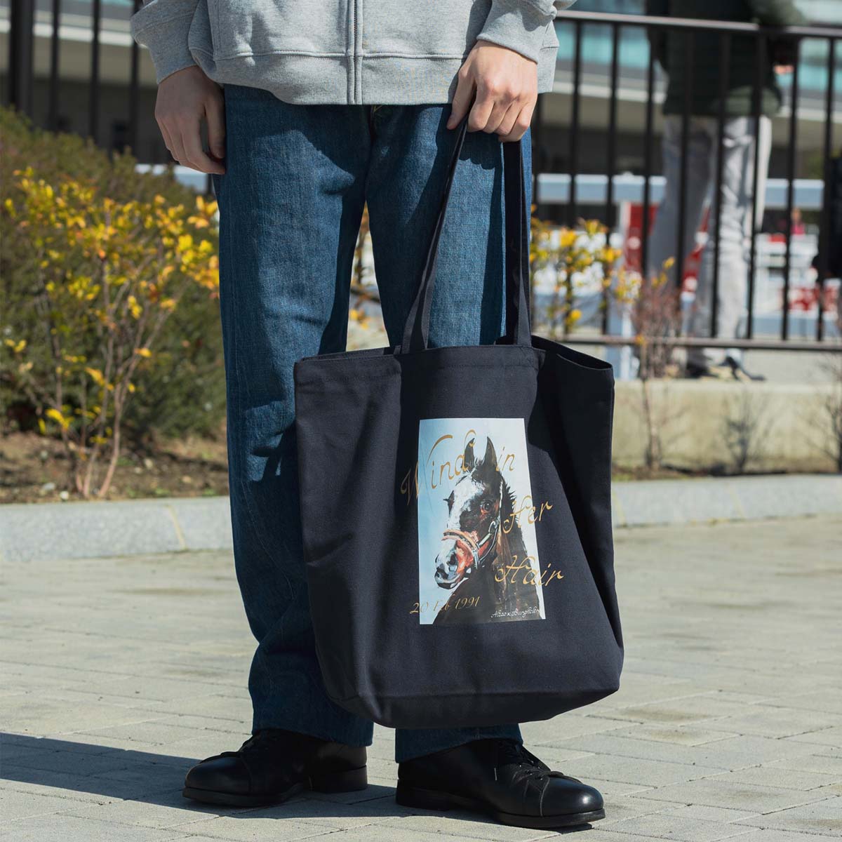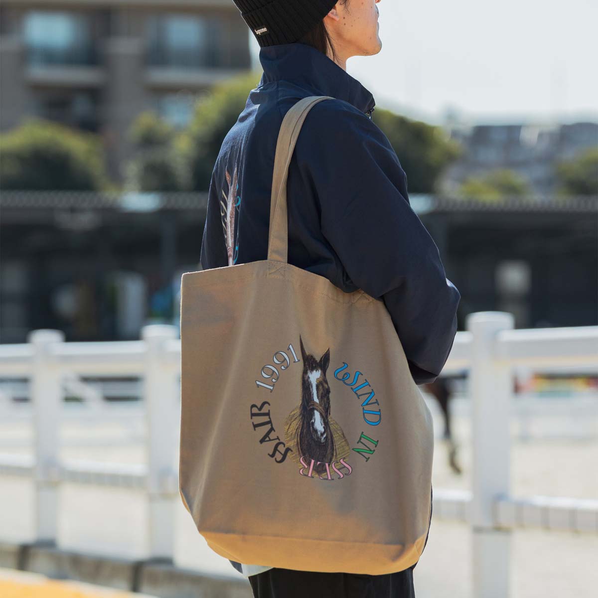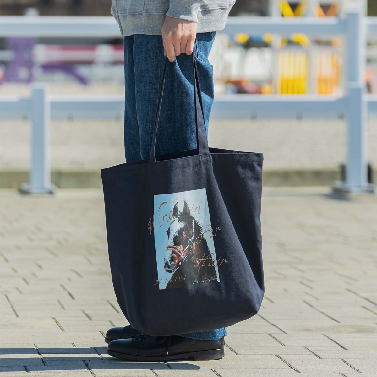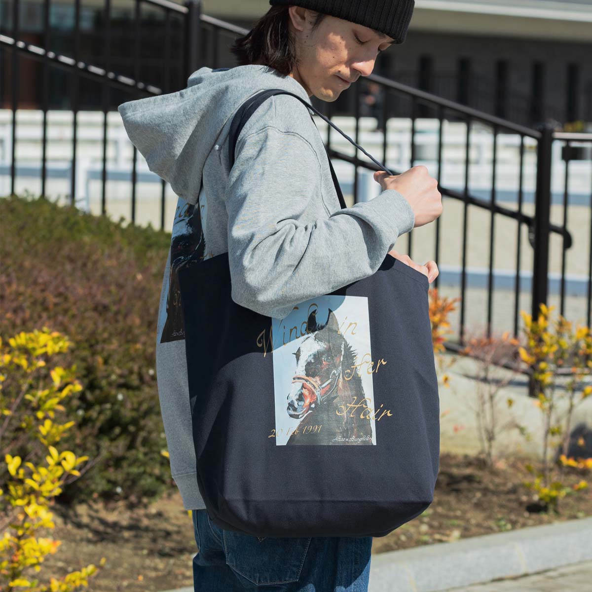 表面にウインドインハーヘアのロゴと生年月日をカラフルにデザイン。落ち着いたボディカラーに映える色使いが存在感を演出します。日常使いしやすく、偉大な母の名をさりげなく取り入れたトートバッグです。