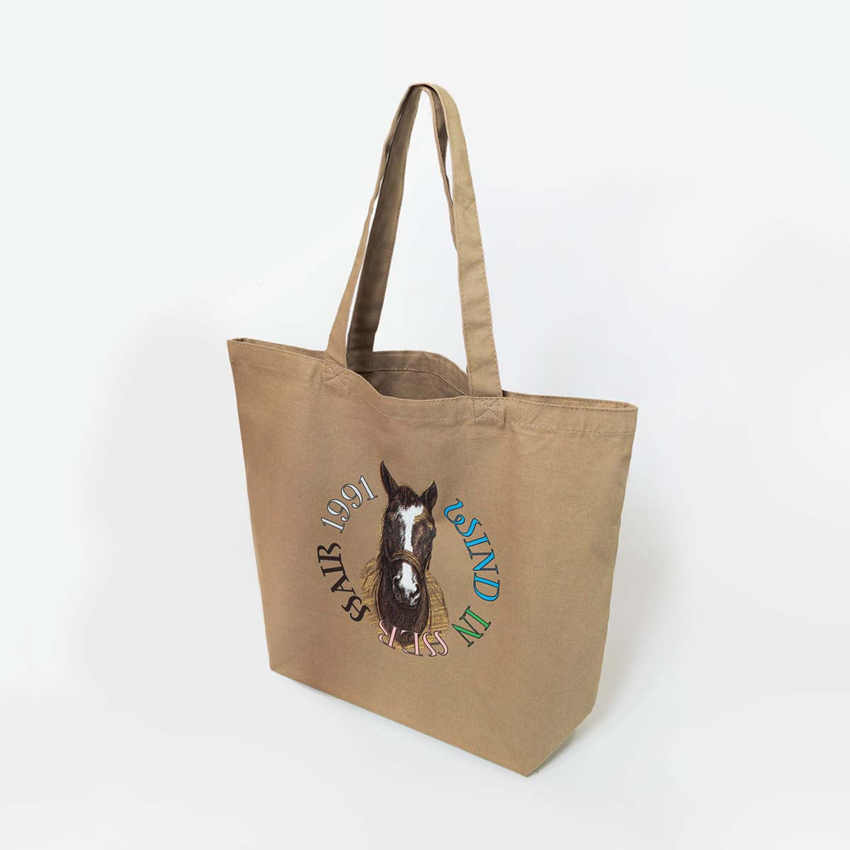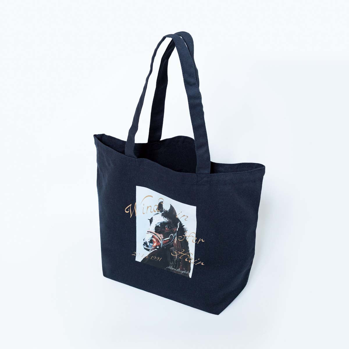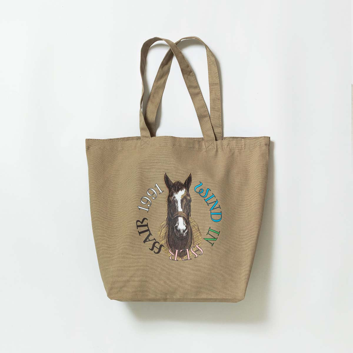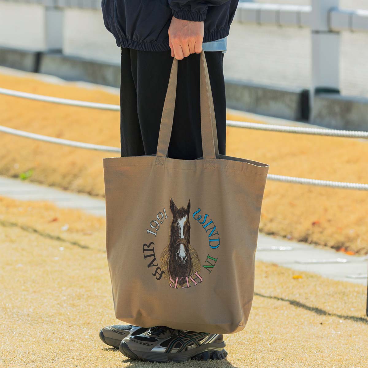 表面にウインドインハーヘアのロゴと生年月日をカラフルにデザイン。落ち着いたボディカラーに映える色使いが存在感を演出します。日常使いしやすく、偉大な母の名をさりげなく取り入れたトートバッグです。