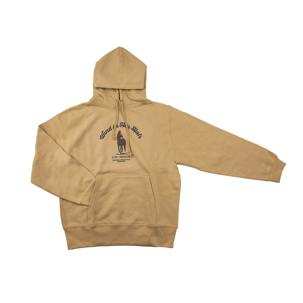 イラストレーター「コウシュウマサル」さんが描く、ノーザンホースパークコレクションのウインドインハーヘアオリジナルコラボレーションパーカーです。