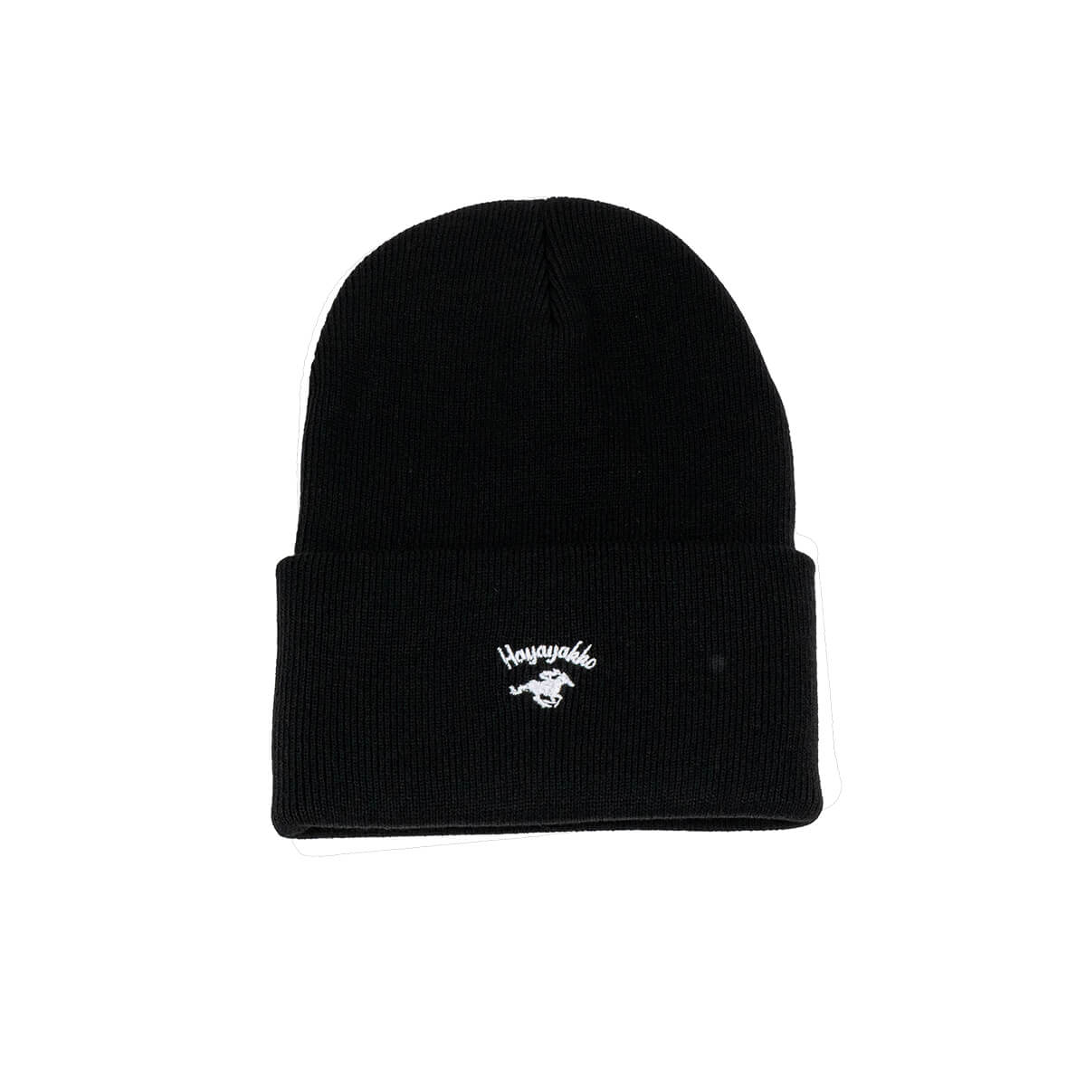 イラストレーター「コウシュウマサル」さんが描く、ノーザンホースパークコレクションのハヤヤッコオリジナルコラボレーションニットキャップです。